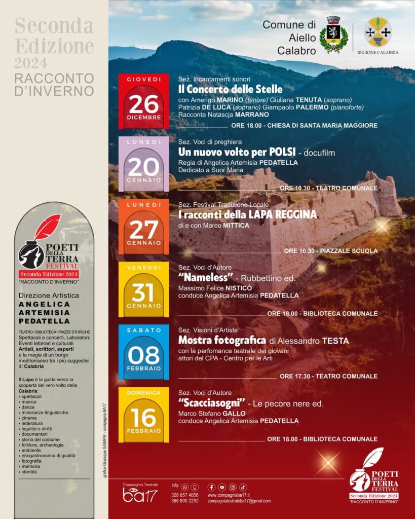 “BESTIE RARE” DI ANGELO COLOSIMO EMOZIONA AD AIELLO CALABRO “Incantamenti” apre l’Estate aiellese con un cartellone incredibile “BESTIE RARE”: commovente, toccante, emozionante, l’opera di Angelo Colosimo ha aperto la sezione del programma culturale di Aiello Calabro “Estate aiellese – Incantamenti”, progetto finanziato con risorse PAC 2014/2020 – Az. 6.8.3 – Avviso Attività Culturali 2023. Il …